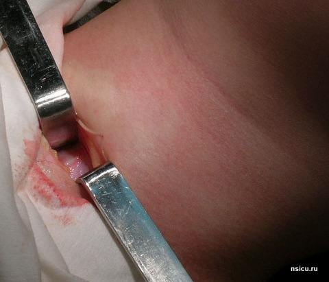 Мы убеждены, что негативное отношение к трахеостомии у многих врачей, несмотря на явные показания для операции, обусловлено низким качеством выполнения операции влекущим за собой большое количество осложнений. На серии представленных снимков авторы пособия выполняют операцию у девочки 5 лет с грубым бульбарным синдромом, сформировавшимся после удаления опухоли ствола мозга. Особенностью пациентов детского возраста является склонность к развитию постинтубационных и посттрахеостомических стенозов. Для предупреждения этих осложнений у детей до 3–5 лет применяются интубационные и трахеостомические трубки без манжеток, и всегда выполняется вскрытие трахеи ниже второго кольца.