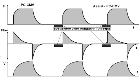 Вариант режима ИВЛ с паттерном PC-CMV (Pressure controlled continuous mandatory ventilation).