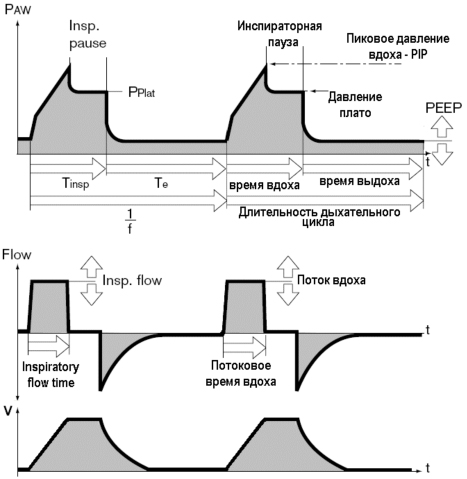 Ниже мы покажем два режима ИВЛ, каждый из которых имеет более десяти имен. Обратите внимание, что режимы с разными способами управления вдохом могу иметь одинаковые имена.